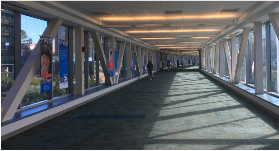 安德森癌癥中心連廊上貼滿了以醫(yī)護(hù)人員的照片和格言為內(nèi)容的海報(bào)